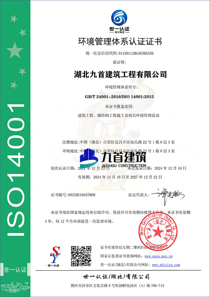 湖北九首建筑 | 环境管理体系认证证书
