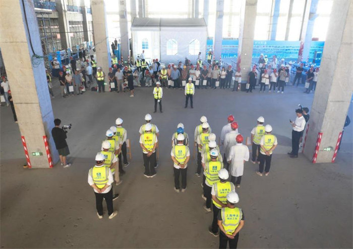 盘扣式脚手架标准化示范区内,新型盘扣架体的规范搭设与稳固性能给大家留下了深刻印象。在智慧工地与标准化管理展示区,智慧工地平台实时监控人员设备动态、塔机安全监测等智能化手段,展现出了科技在安全管理中的重要作用。