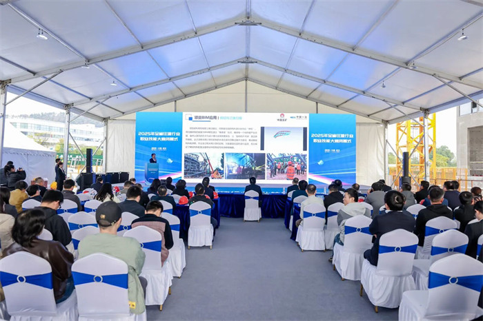科技创新成果演示环节,各大企业纷纷亮出“黑科技”。中建三局汉韵公馆项目呈现的“数字建造”实景令人瞩目:实时跳动的数据、智能安全帽“小黄人”、自主物料机器人、“造楼机双雄”与无人机编队,让“数字孪生”智慧工地从蓝图走进现实。中国一冶、中交二公院等单位分别展示了BIM技术、数字孪生隧道管控等前沿应用,获全国勘察设计大师陈楚江高度肯定。