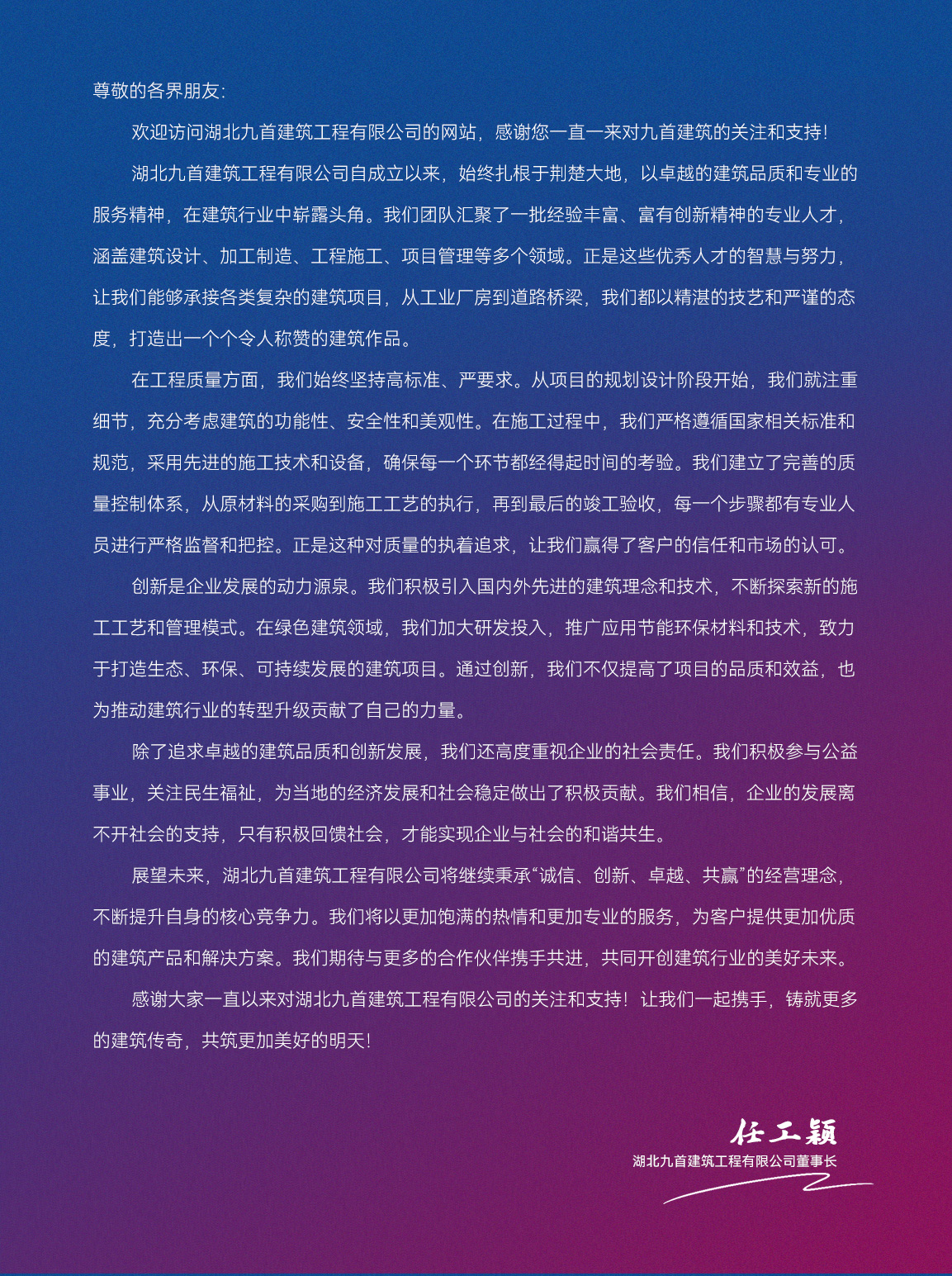 展望未来,湖北九首建筑工程有限公司将继续秉承专业、高效、创新的精神,不断提升核心竞争力。凭借雄厚的实力、丰富的经验和良好的信誉,公司将打造更多精品工程,为社会发展和城市建设贡献更多的力量。